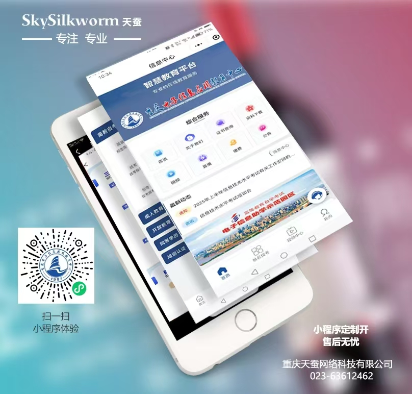 天蠶軟件開發公司經過多日的精心開發與不懈努力,“重慶電子信息應用教育中心”小程序 終于與大家見面啦!該小程序功能“視頻課程、高考自考、成人教育、同等學歷、培訓認證”等,學生都可以在線報名和學習。搜索“重慶電子信息應用教育中心”立即體驗。